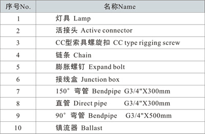 2、本燈具出廠時不配光源,由用戶自配,建議使用亞明、飛利浦光源;